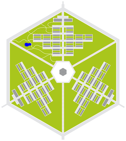 Als Vorbild habe ich das Bauhaus in Dessau, da das Bauhaus sowohl ein künstlerisch/ästhetisches als auch ein soziales Ideal repräsentiert, und die Sehnsucht nach einer vergangenen Zeit, in der das Glauben an Ideale noch möglich war, perfekt zum Ausdruck bringt.
