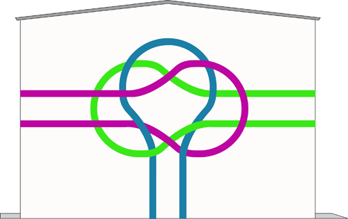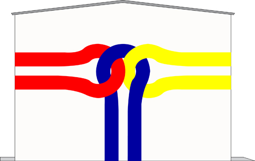 Die Zeichnungen werden sich an traditionellen architektonischen Entwurfzeichnungen orientieren: technische Zeichnungen, farbige perspektivische Einblicke in die Räume des Gebäudes – Zeichensaal, Computersaal, Werkstatt, gemeinsame Ess-, Wohn- und Badezimmer, Kinderspielzimmer, sowie die privaten Schlafzimmer der einzelnen Koloniemitglieder. Ich werde dabei auf Teile des Bildmaterials des Bauhauses – Architekturzeichnungen, einige Fotografien - zurückgreifen.